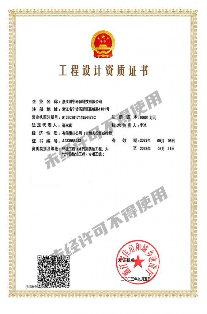 雛鷹摔了無數(shù)次,才有翱翔天空的本領(lǐng),鳳凰忍受住烈火焚燒,才有了涅槃重生。隨著時(shí)間推進(jìn),浙江川寧環(huán)??萍加邢薰救w員工不畏艱難,鍥而不舍,不斷進(jìn)取,于2023年9月5日,順利通過浙江省住建廳的資格審查,成功取得環(huán)境工程水污染防治工程專項(xiàng)乙級(jí)/大氣污染防治工程專項(xiàng)乙級(jí)設(shè)計(jì)資質(zhì)!也是寧波市首家獲此環(huán)境工程設(shè)計(jì)資質(zhì)的企業(yè)。
